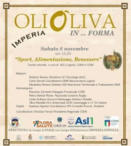 Sabato 8 Novembre alle ore 10 presso la tensostruttura dedicata alle attività del CSEN in Largo Viale ad Imperia, nell’ambito dell’evento Olioliva che vede la